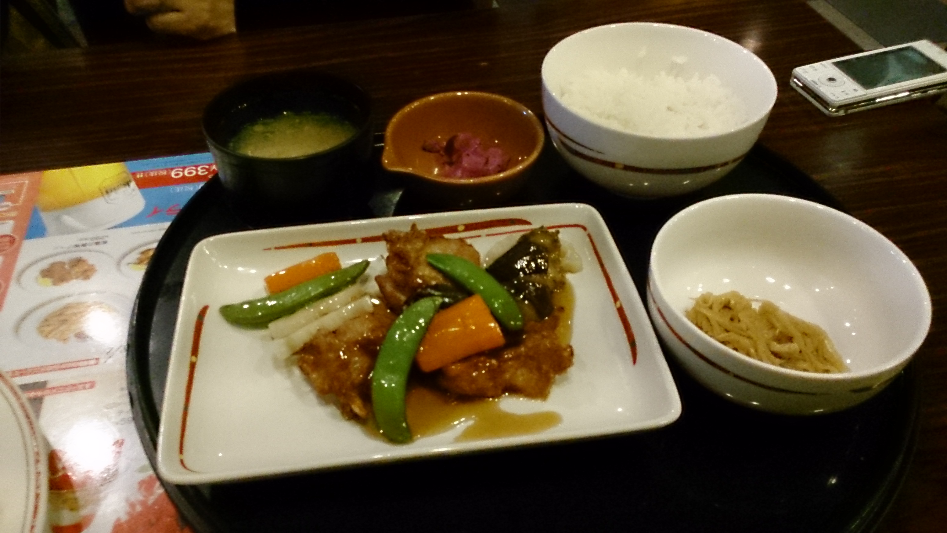 黒酢豚定食、奥さん初めて頼みます。チーズI Nハンバーグ、期間限定で399でした。