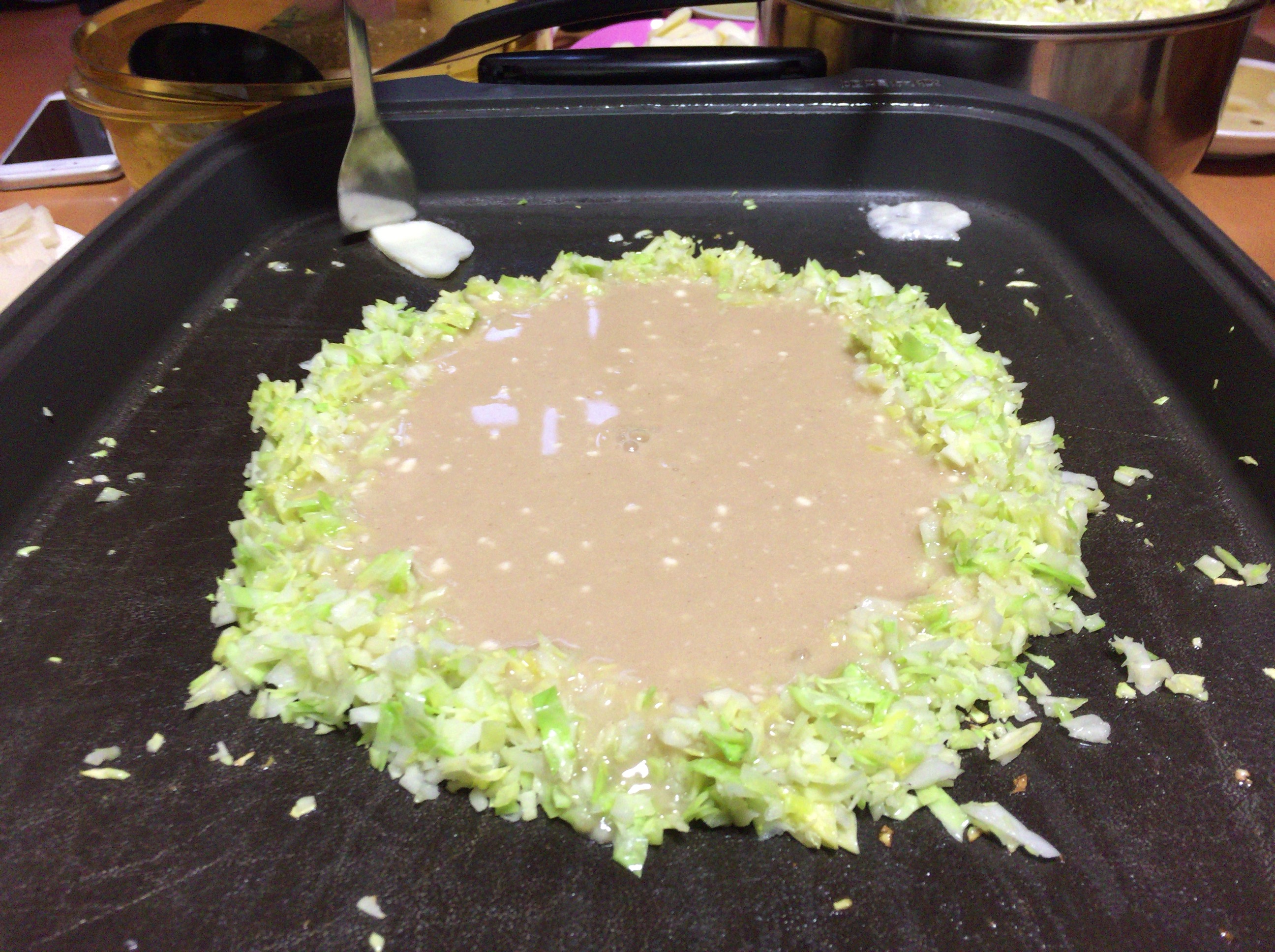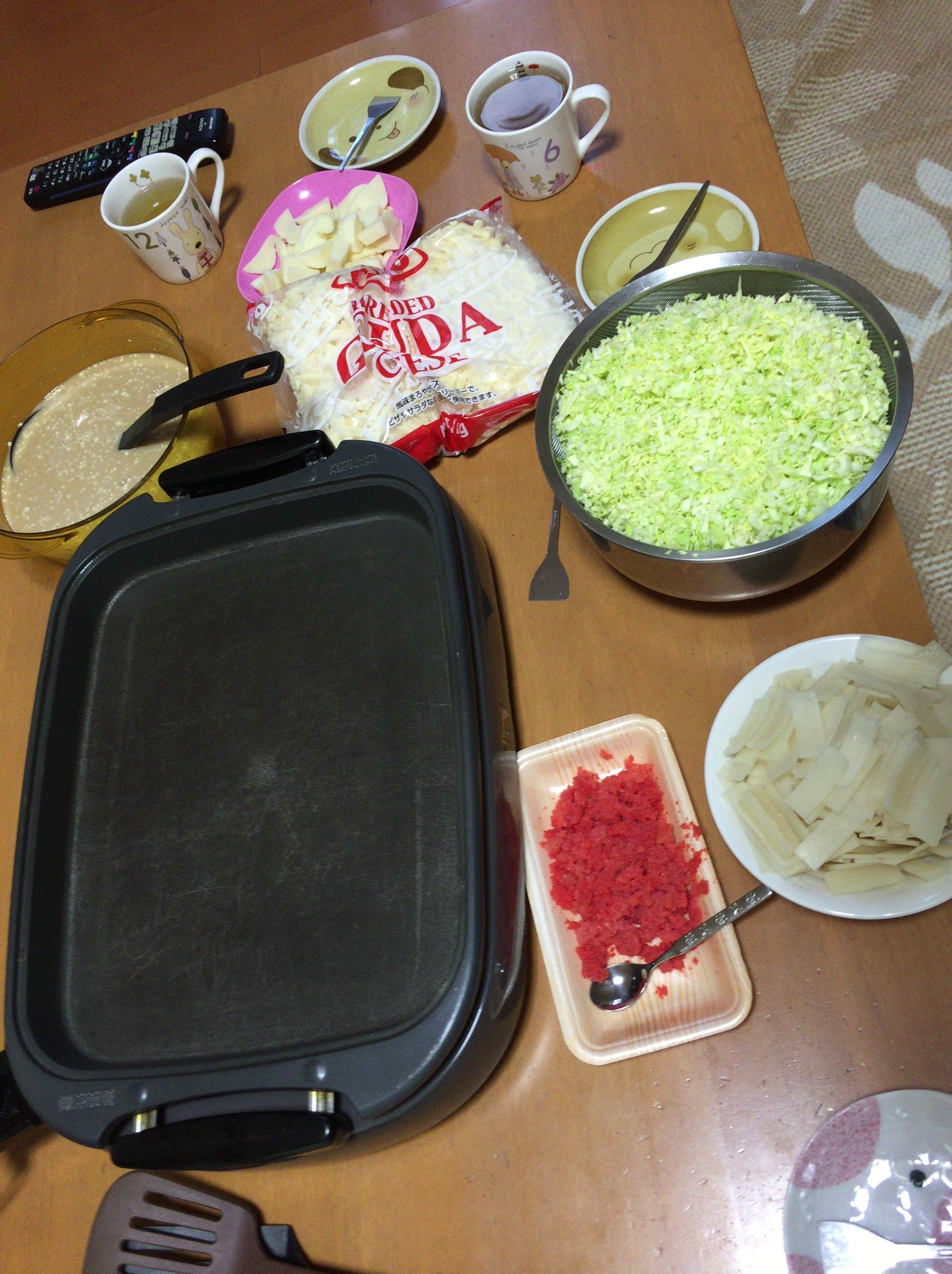 ホットプレートでもんじゃをしながら食べる事に。