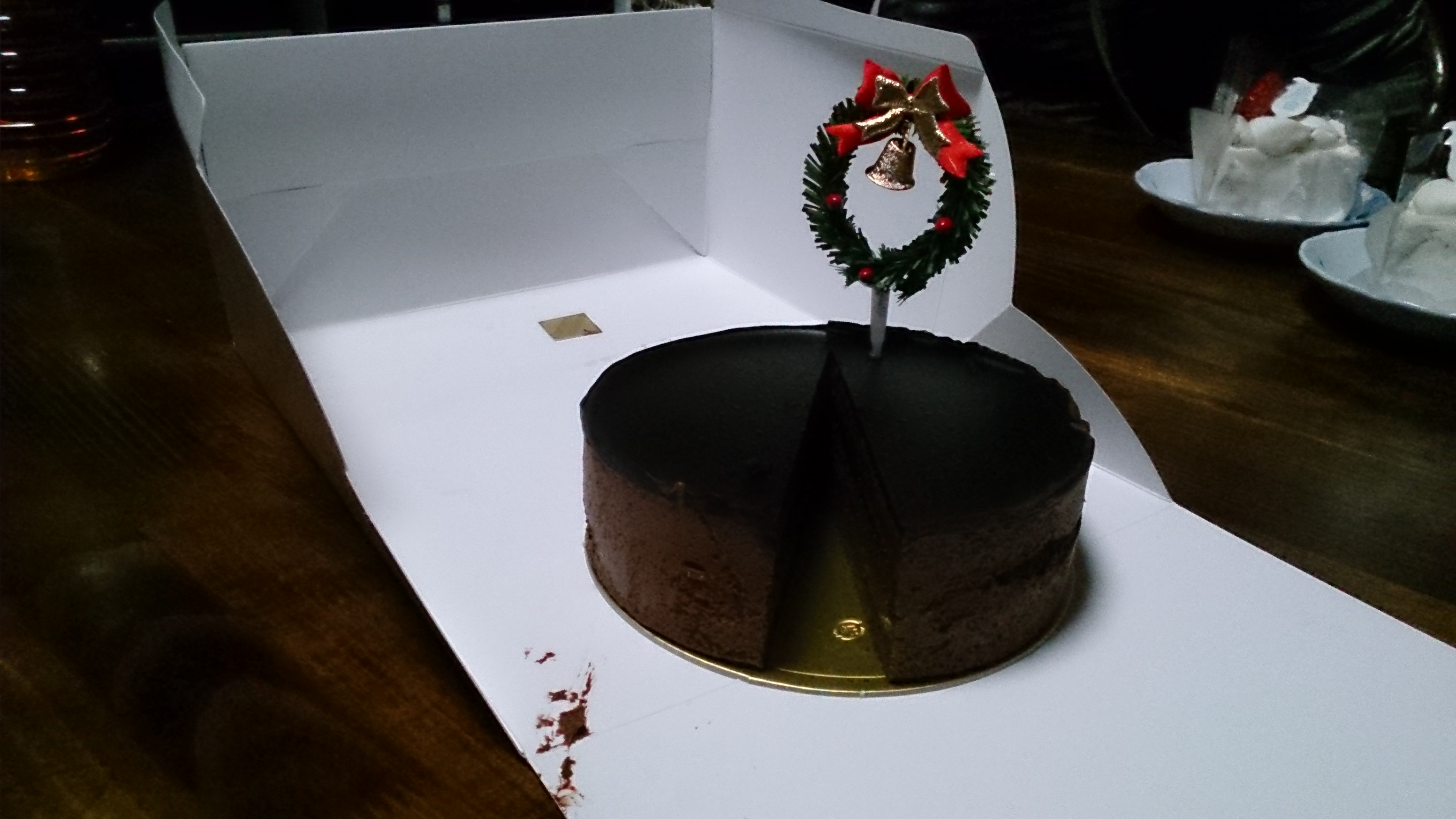 食後はもちろんケーキです。食べたのはチョコケーキ、濃厚で柔らかくおいしかった~。