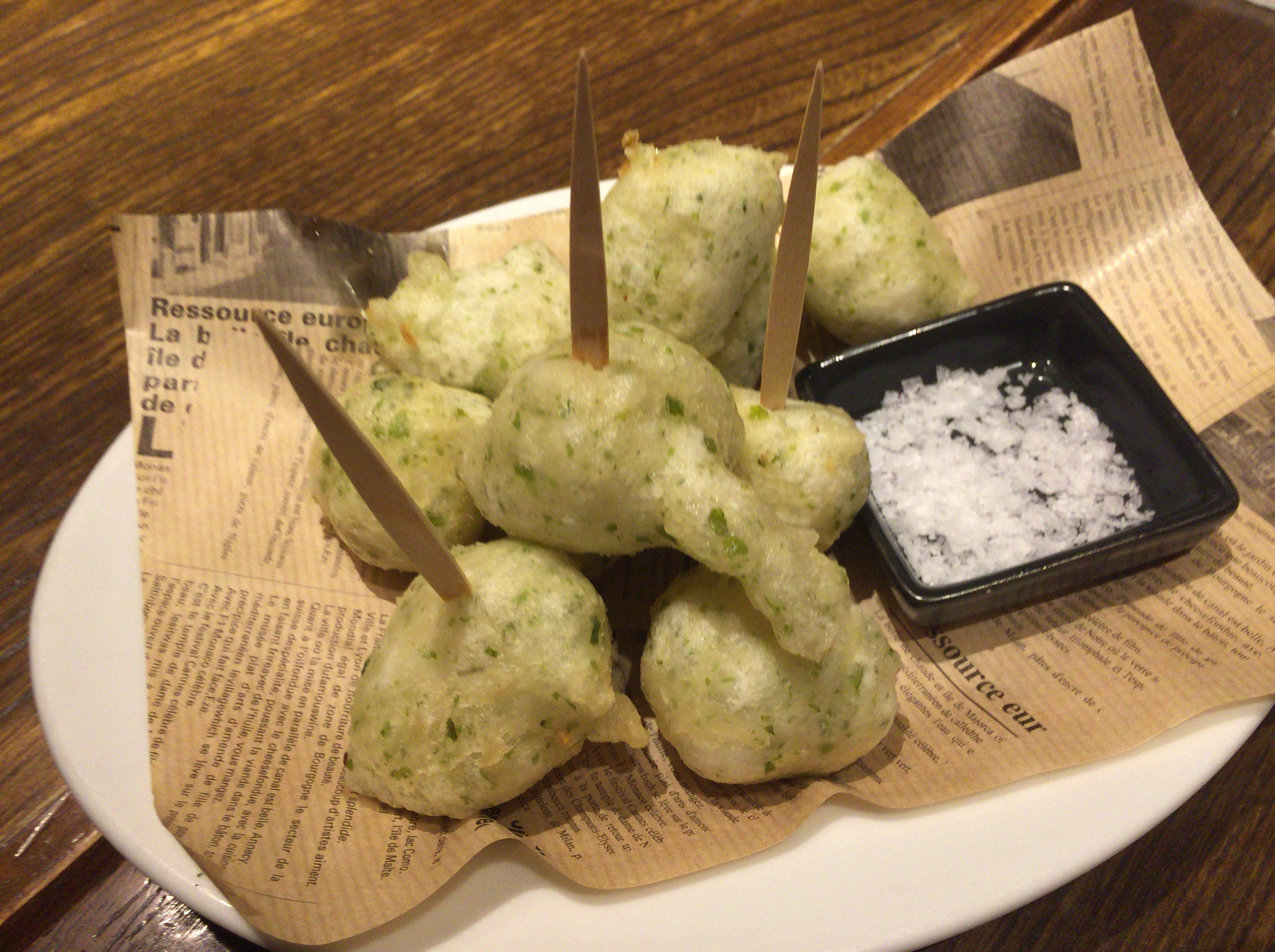 サラダ美味しい。この揚げ物は…