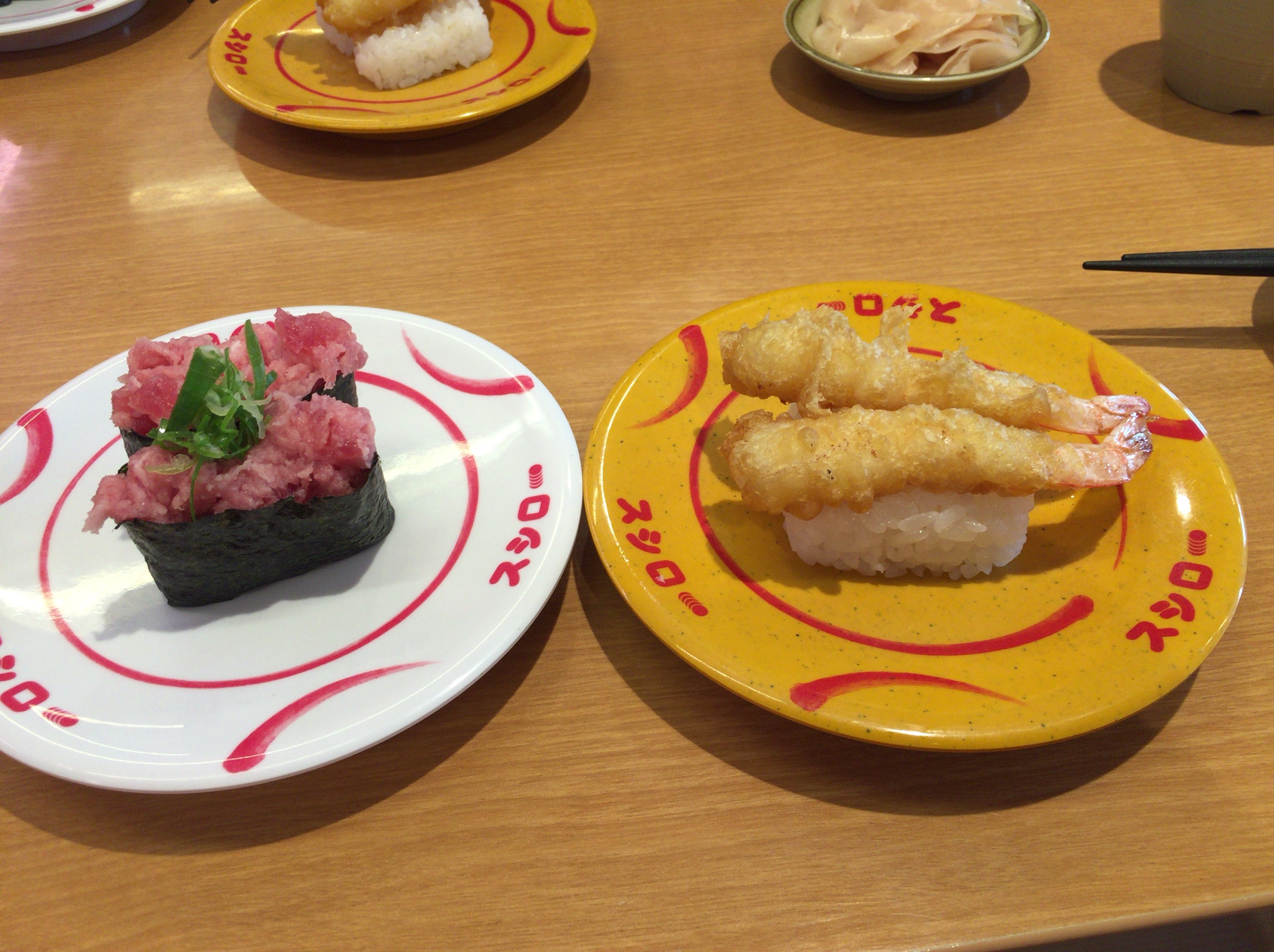 最近は、ネギトロ、エビ天、炙りサーモンを