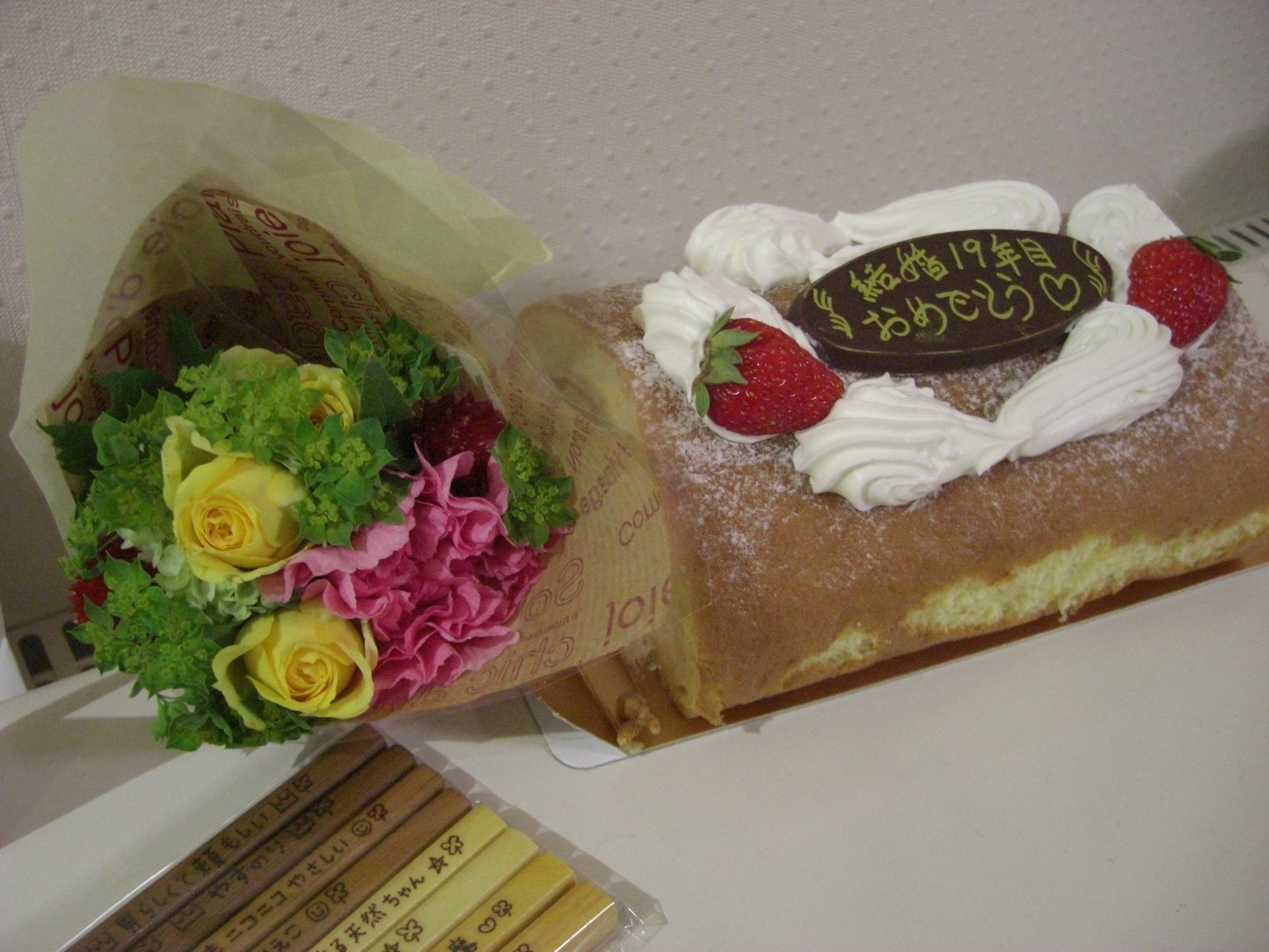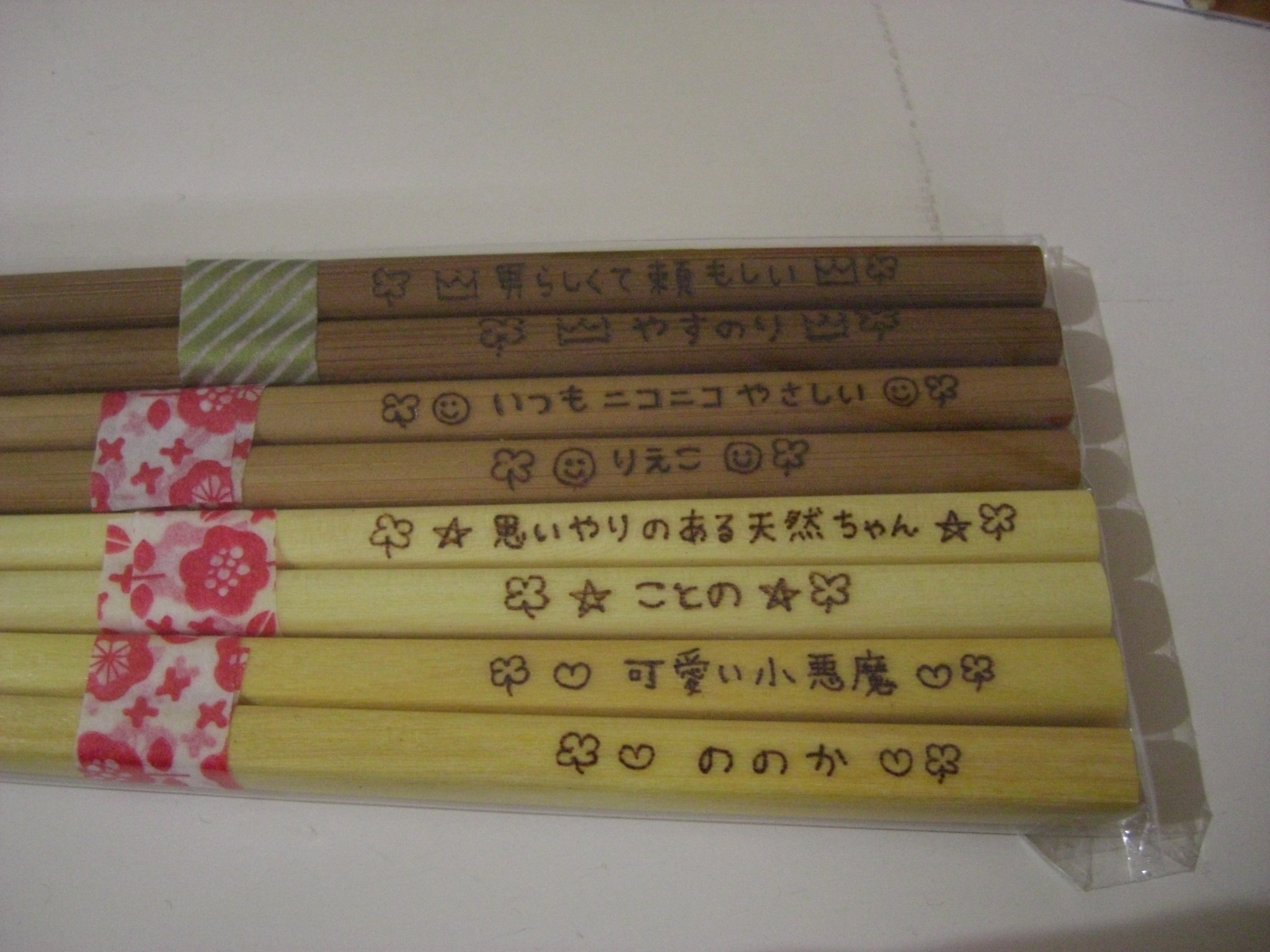 箸に1人1人にメッセージが書いてありました。