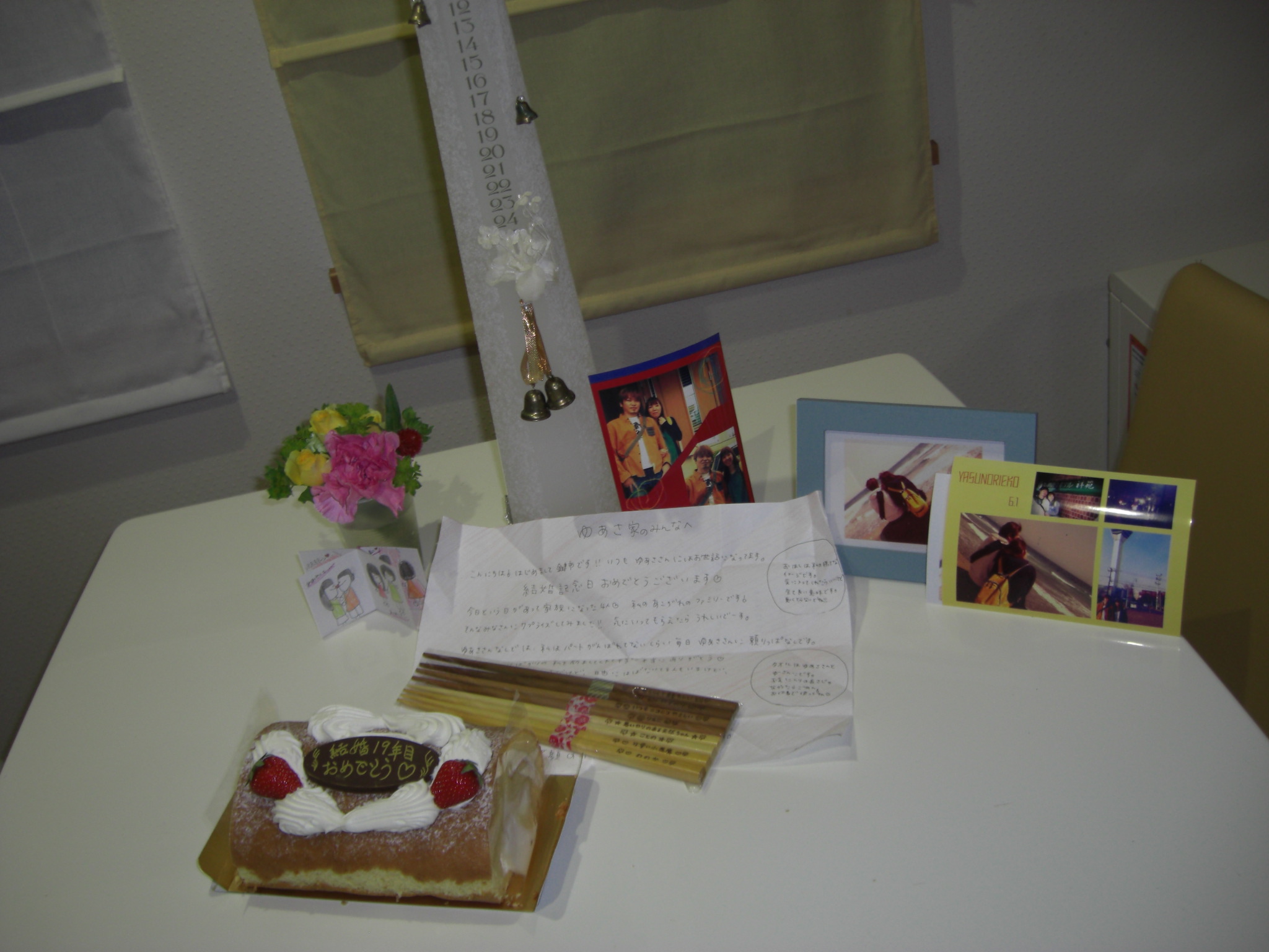 結婚式に使ったろうそくと長女が写真を加工して写真タテに入れてくれた物全て置いて写真をカシャッ。