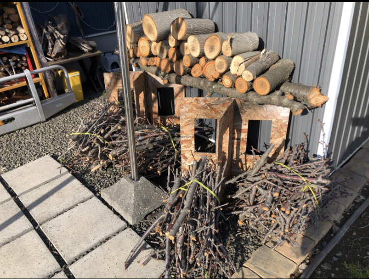 乾燥ささてキャンプ用の薪にするよ♪( ´θ`)ノ
