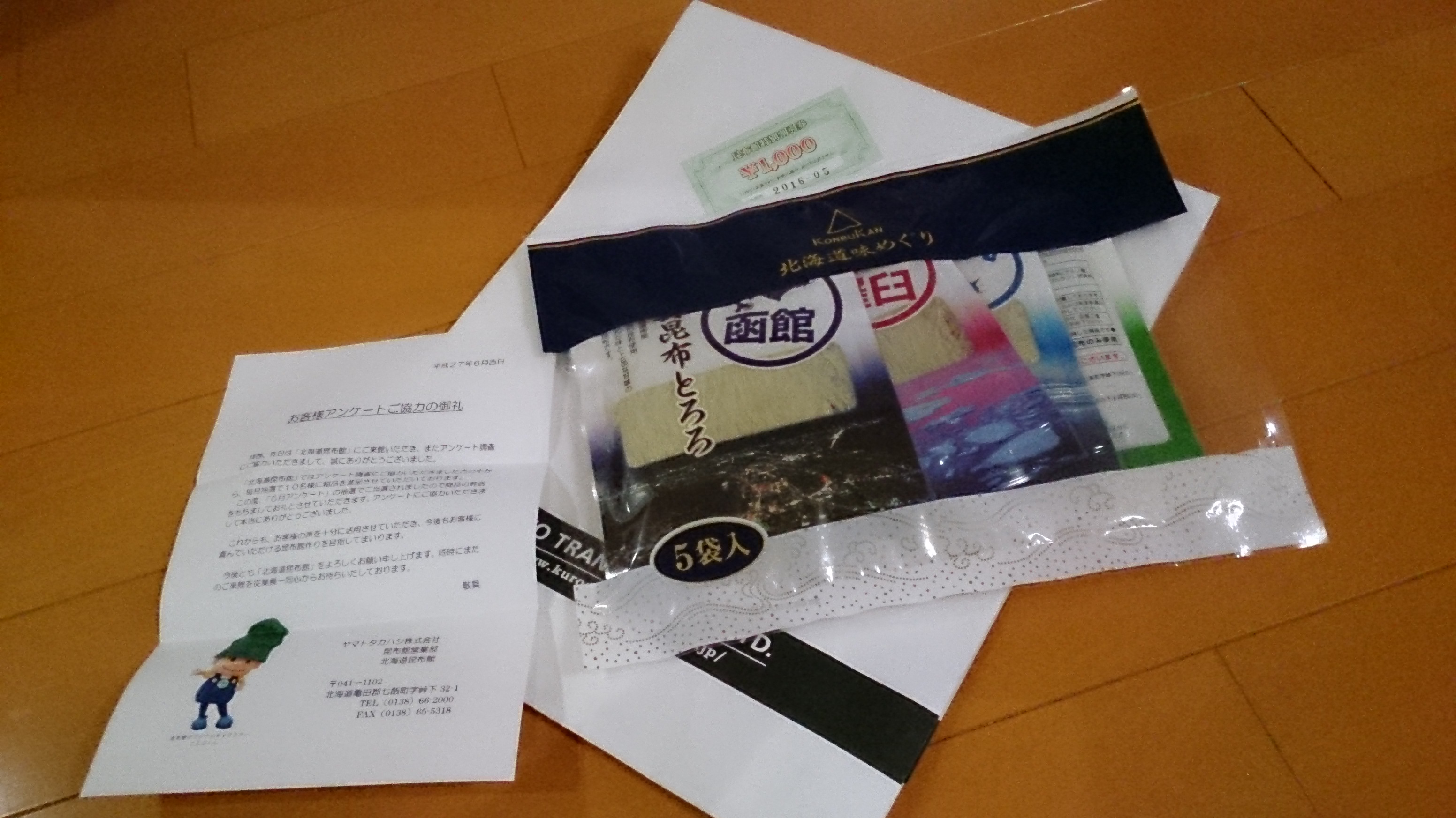中を開けてみたら奥さんが函館の帰りに寄った昆布館で書いたアンケートが当選して