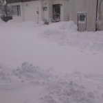とりあえず雪をまとめ、お父さん(義父)が除雪機で雪を飛ばしてくれました。