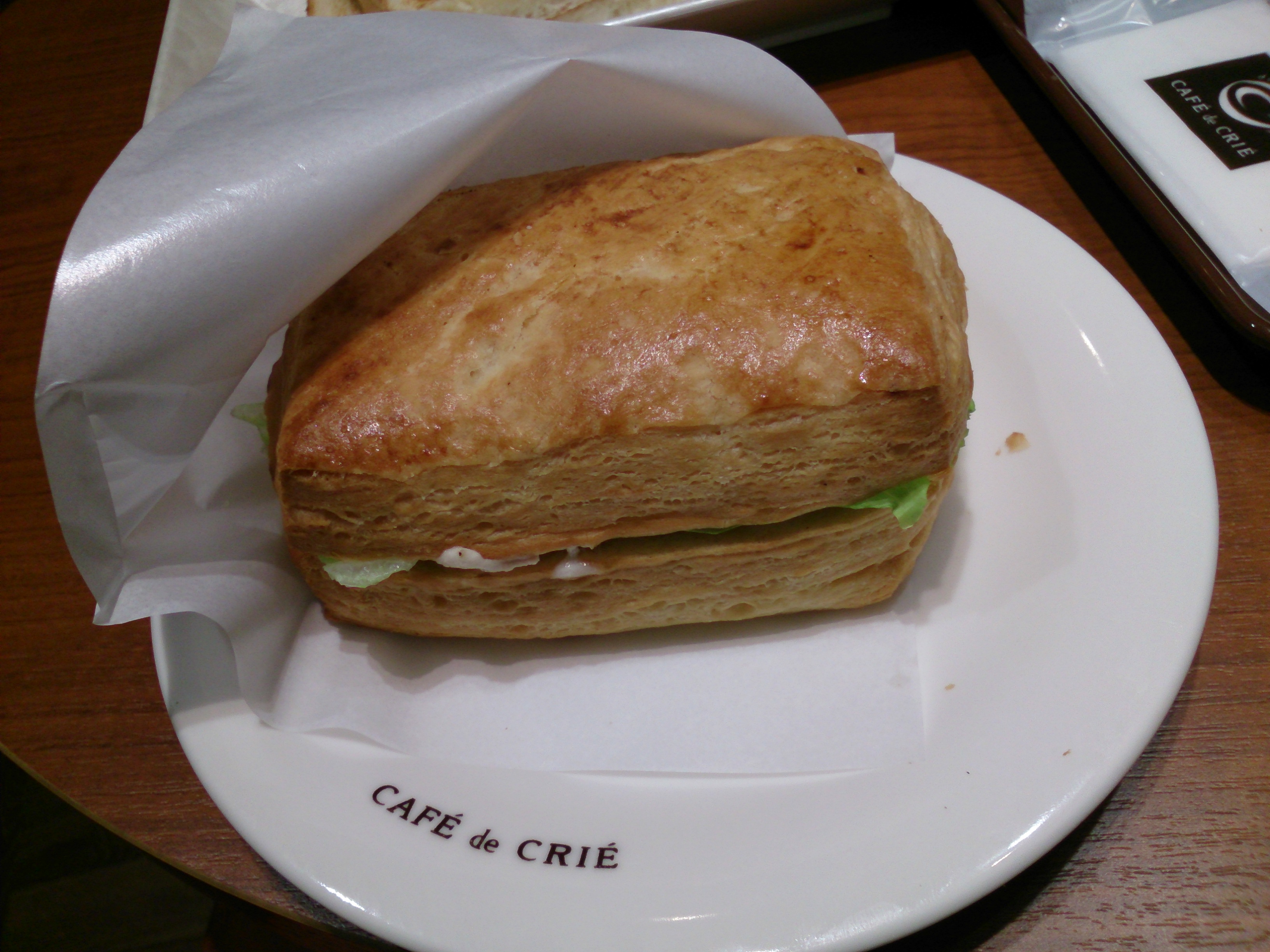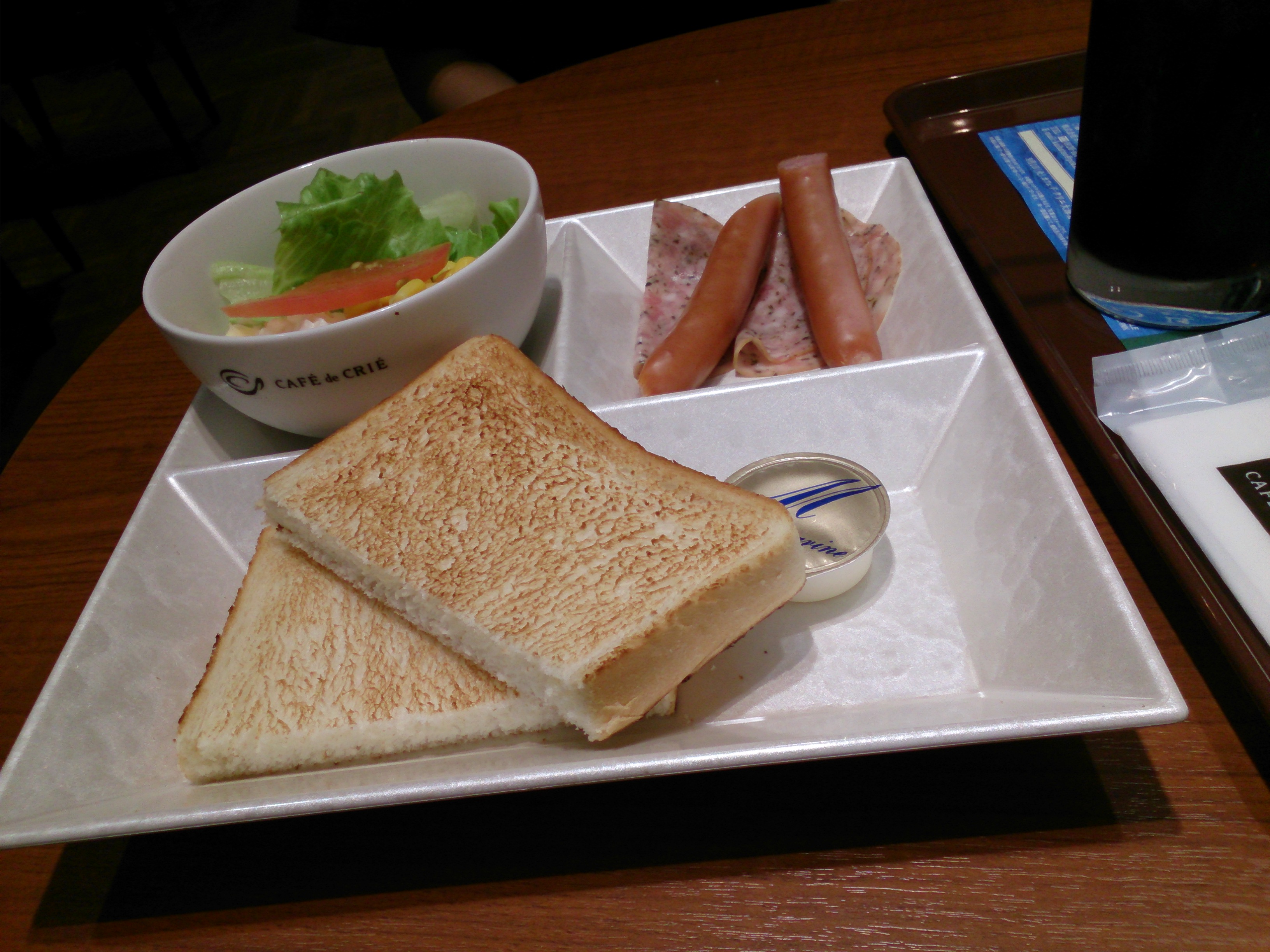 モーニングプレートのソーセージにデニッシュサンドのエビとツナ。