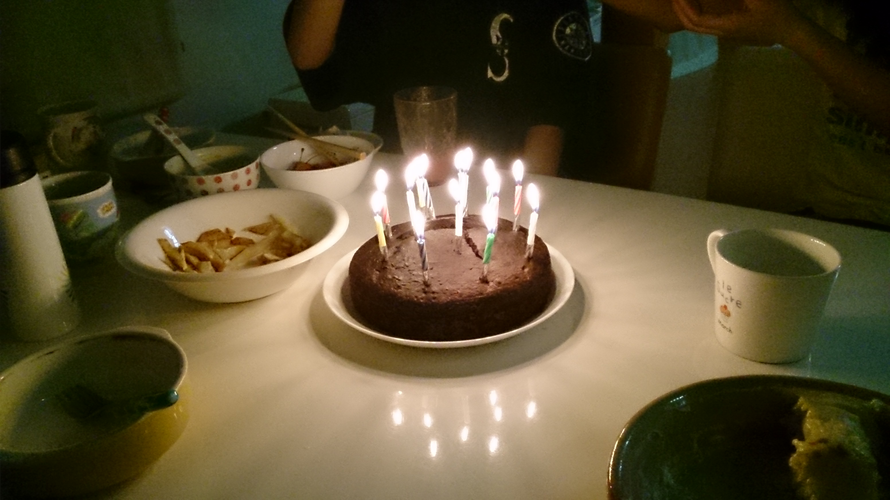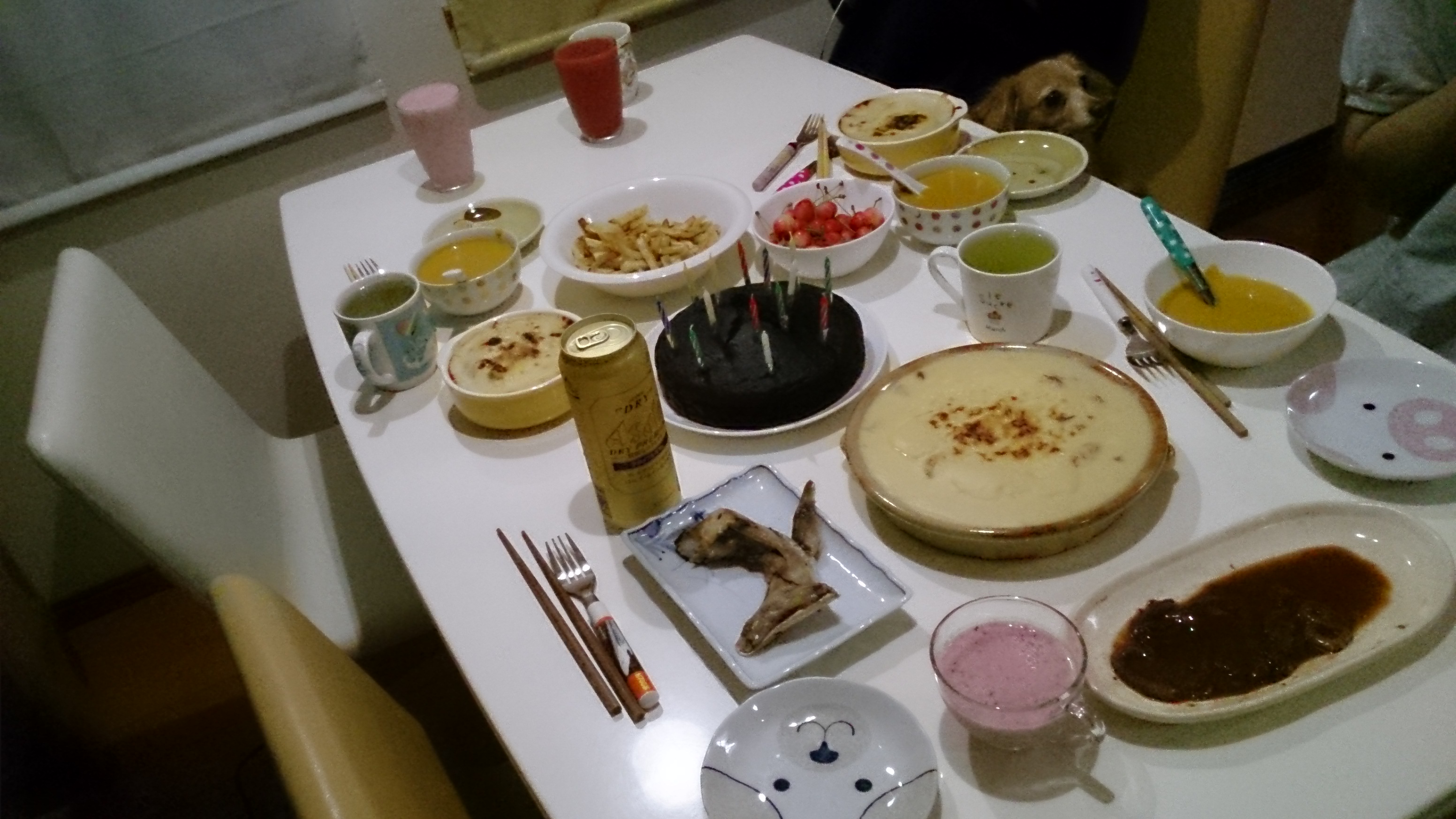 食後には、手作りガトーショコラにローソクを立てて、唄を歌って、