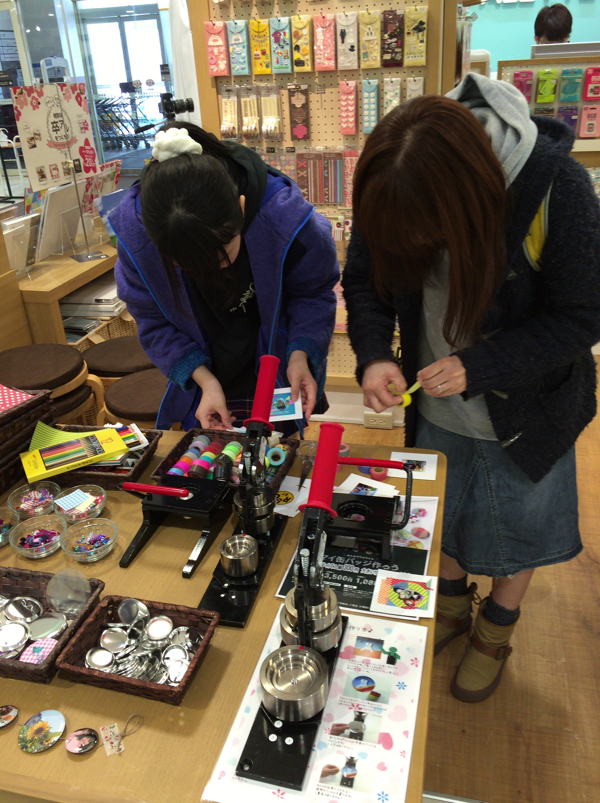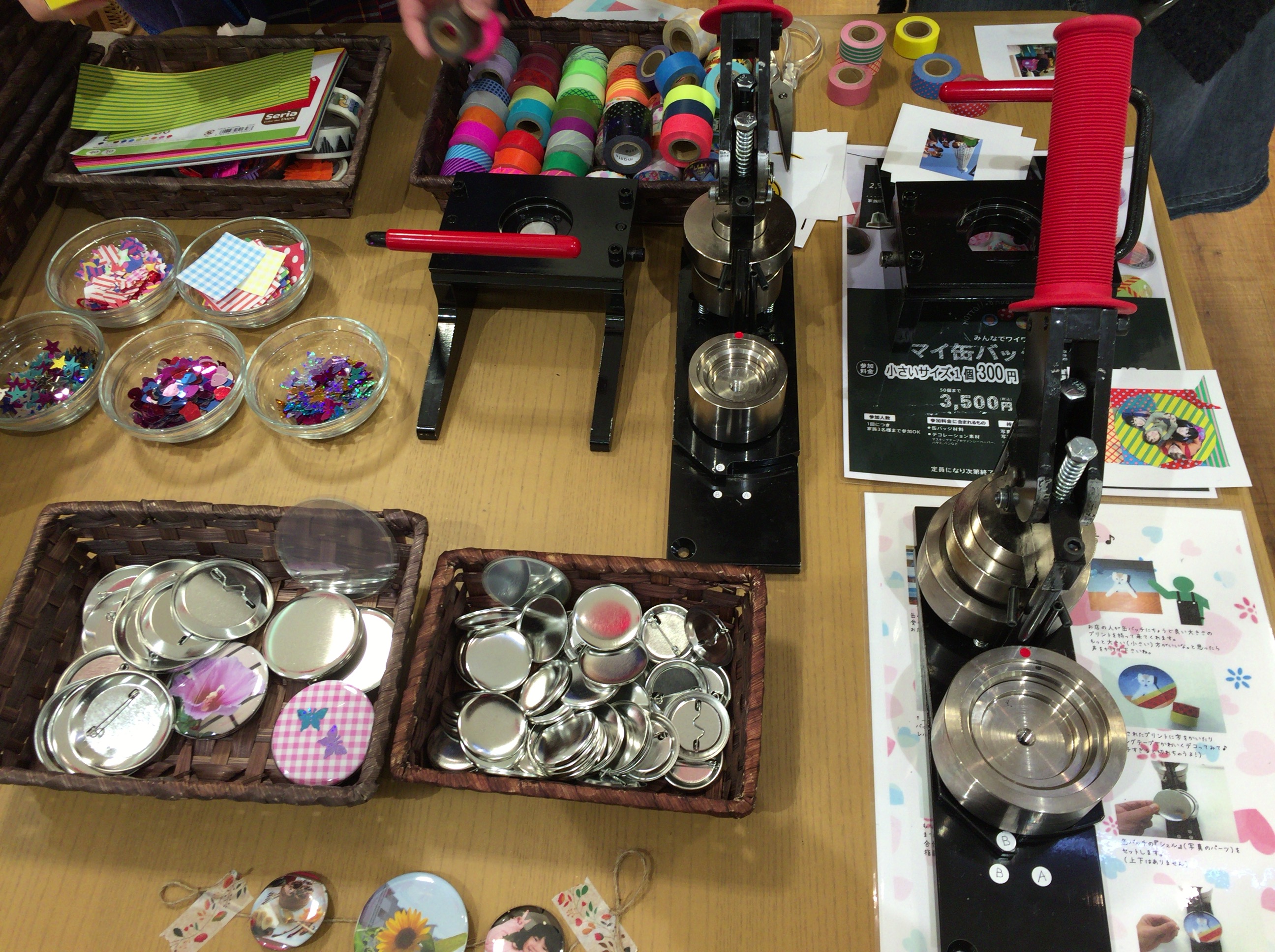 缶バッチが安く作れると言う話を聞いて、奥さんと次女を連れて