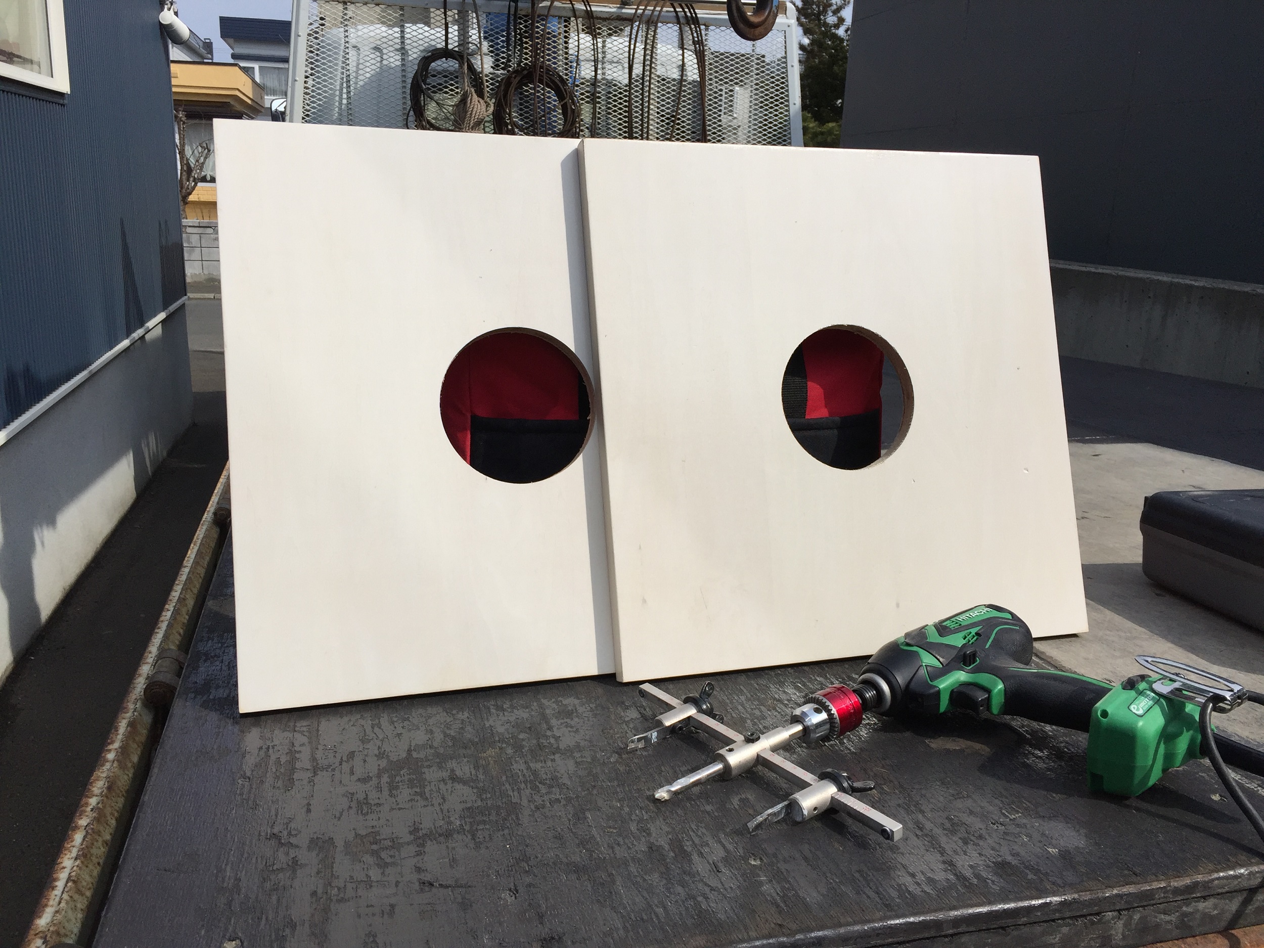 穴あきのランバーと二つ目の化粧メガネ、ランバーにアルミのシートを貼り