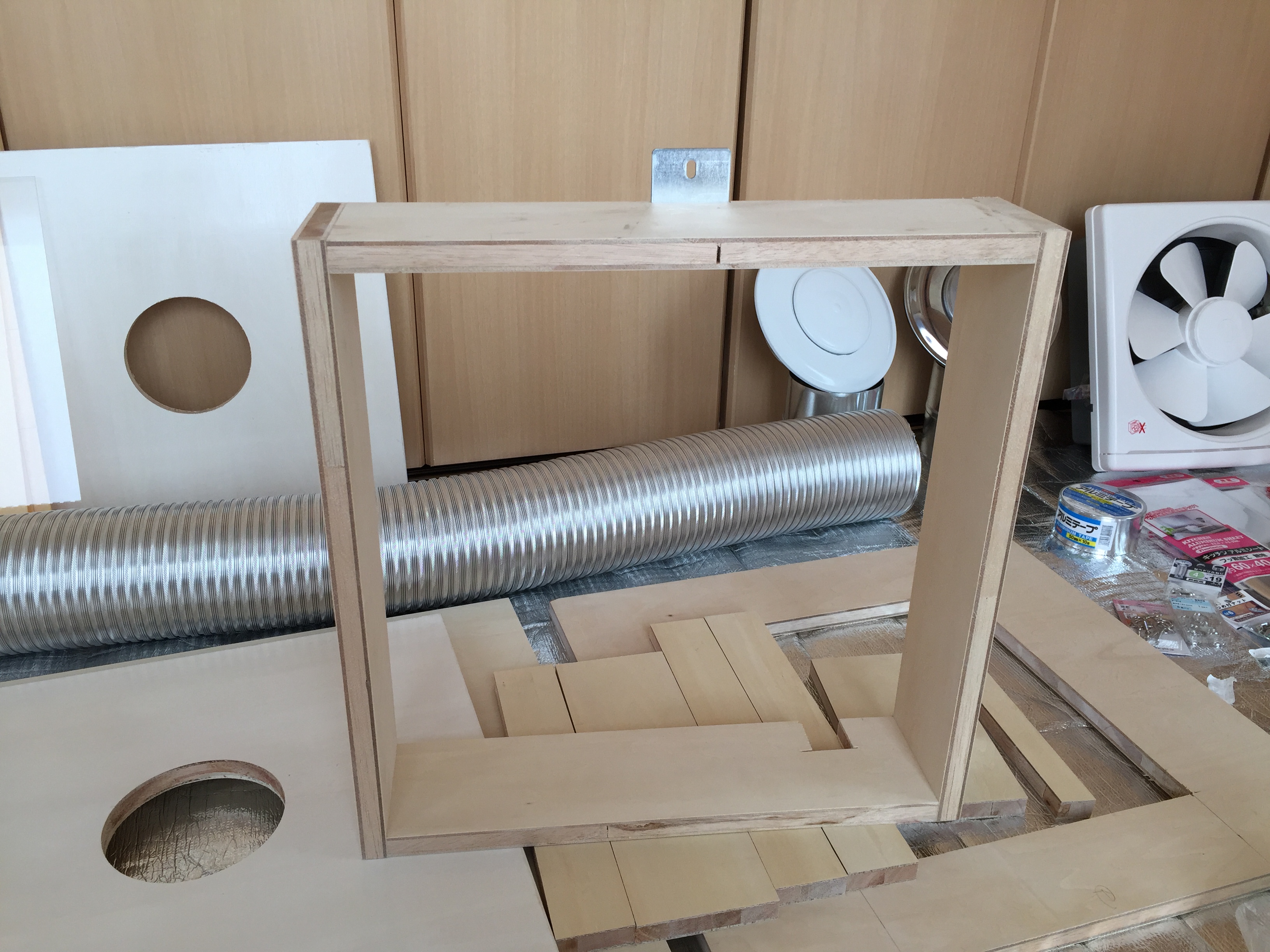 続きまして、換気扇を取り付ける箱を組んでいきます。
