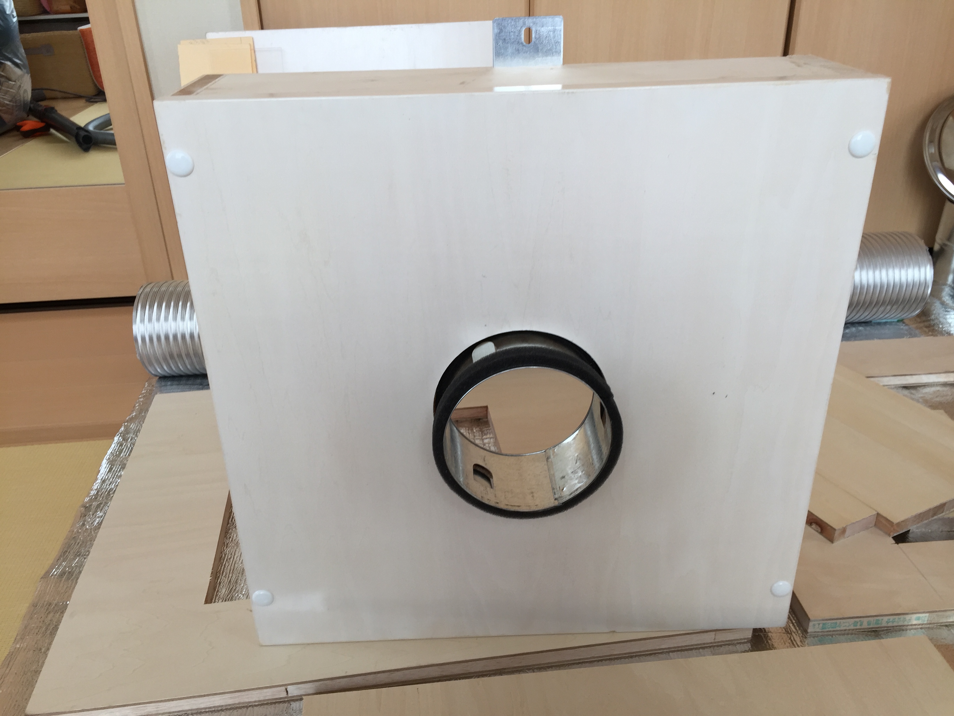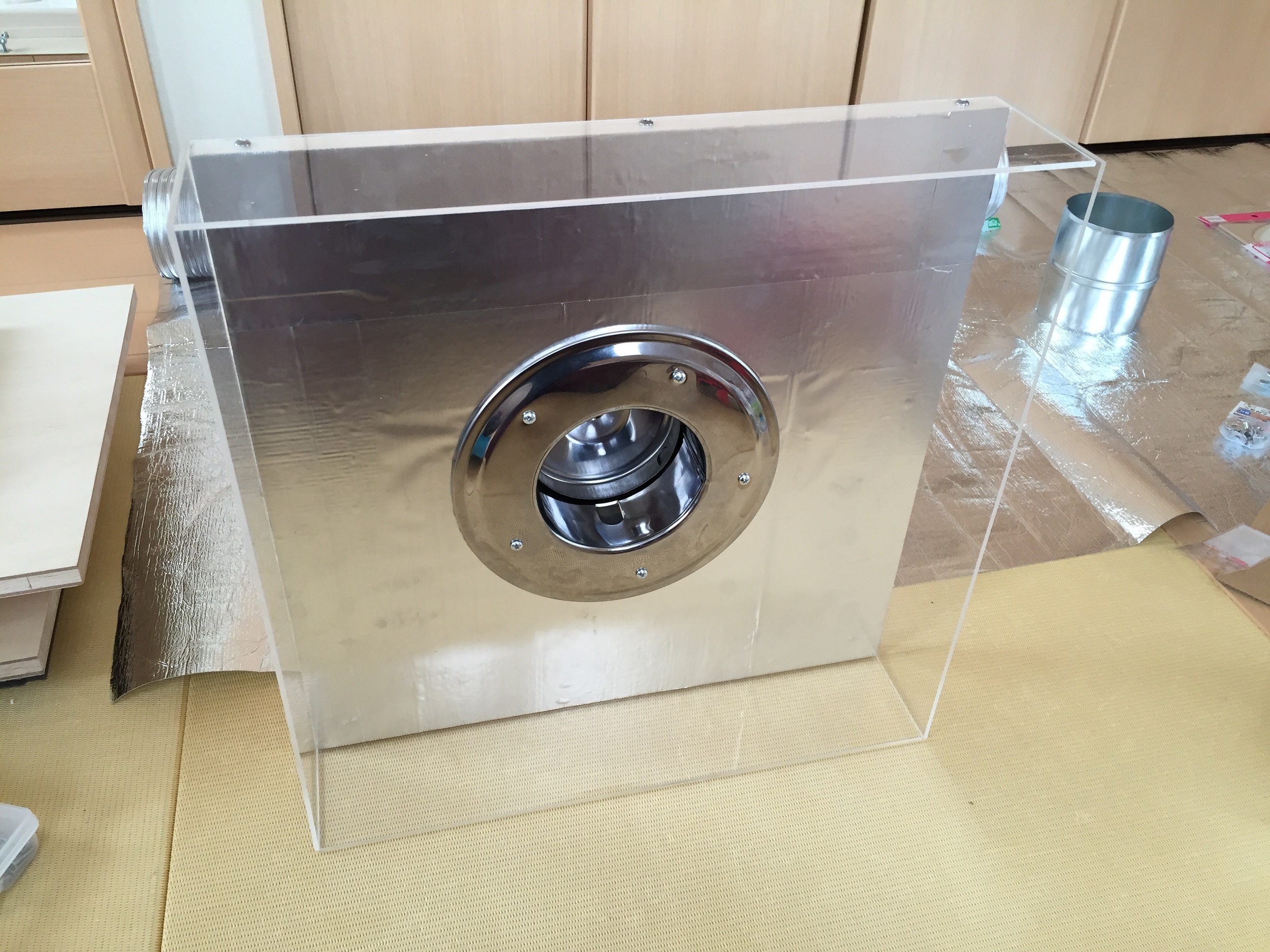 換気扇を取り付け、吸い込みのカバーを付けてみました。