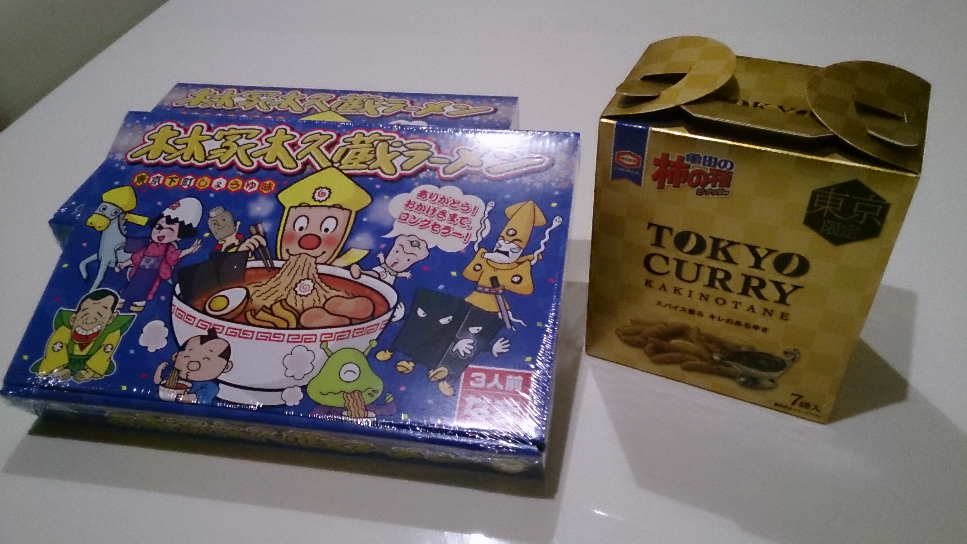 木久蔵ラーメンとカレー味のカキピーです。